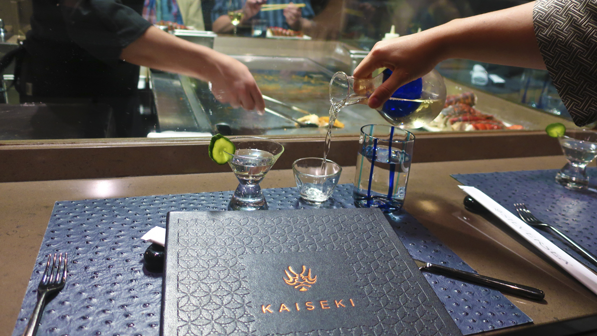 Sake and a show at the grill in Kaiseki –Photo by Wallace Immen
