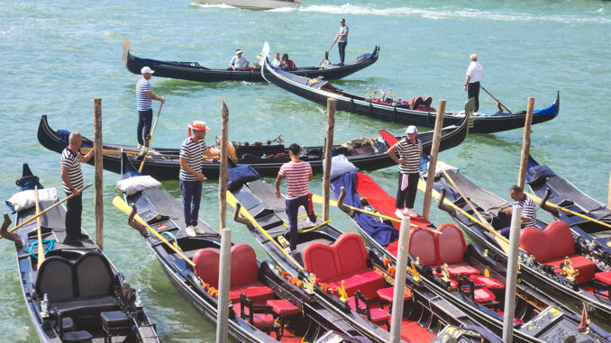 The tech may be different, but the scene has been repeated here daily since the Renaissance, when gondolas were the private limos of the merchants of Venice who made vast fortunes in the spice and silk trade. Today they’re joined by sleek varnished-wood motor taxis and vaporetto ferries.
