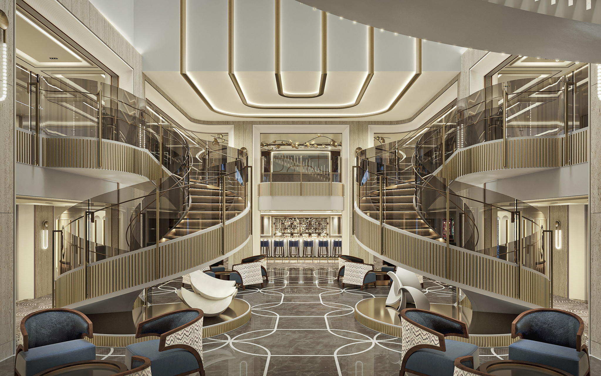 The first of a new Prestige Class, Regent Seven Seas Cruises‘ long-awaited Seven Seas Prestige arrives in December, 2026. It’s the luxury line’s first new ship in 10 years. The 850 guest ship promises one of the highest passenger-to-space ratios in the industry and the most personal service. The all-inclusive cruises will feature seven specialty restaurants and 11 dining experiences, including the new Azure for mixed Mediterranean flavors. Prestige will also feature a range of new suite categories, such as dual-level loft suites.