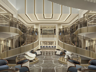Yes, this is a completely new platform for us. It’s going to carry 830 guests and the layout of the ship is more spacious than anything Regent has built before. The Grand Atrium is going to be larger than any we’ve done, with a monumental staircase that spans nine decks topped by a skylight that will allow a lot of light to filter in. And while on other Regent ships the elevator area is enclosed, on Seven Seas Prestige it’s all in the open.